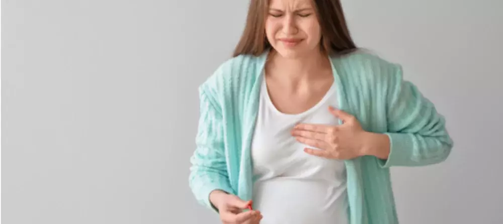 - ممارسة التمارين الخفيفة: قد تساعد بعض التمارين على تخفيف الضغط الواقع على البطن والصدر، ويمكن الاستعانة بكرة التمرين لشد عضلات الظهر والصدر، مع ذلك يجب استشارة الطبيب قبل ممارسة أي تمارين ليتأكد أن حالة الحمل والجنين تسمح بذلك.