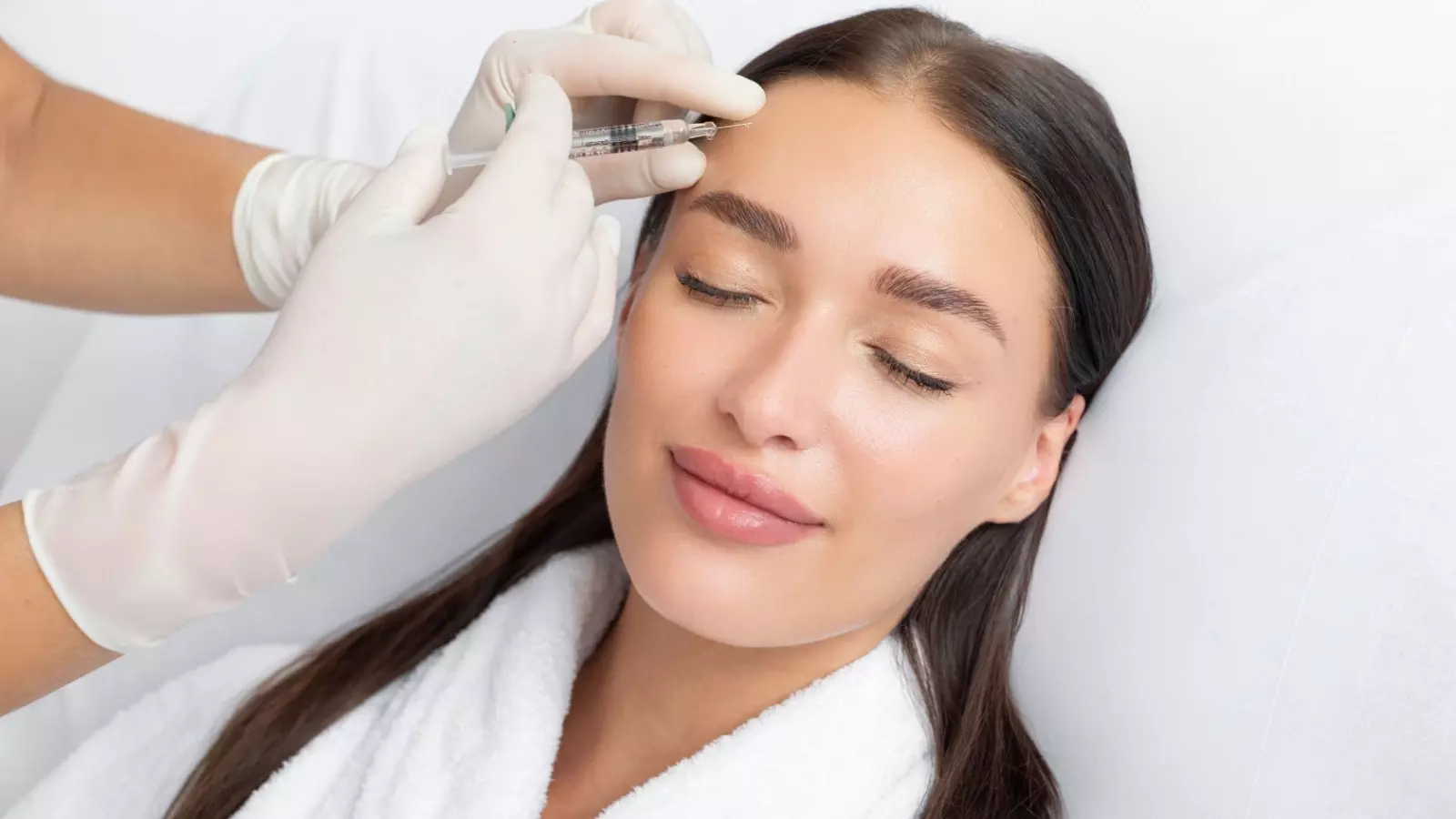 تحقن الطبيبة الإبرة في مناطق محددة من الوجه.