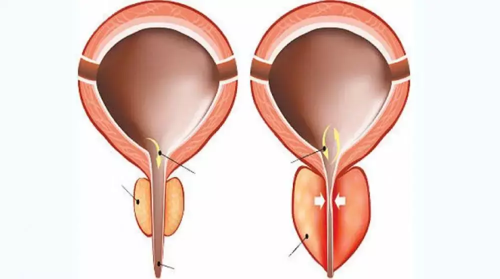 تضخم البروستاتا الحميد هو تضخم غير سرطاني في البروستاتا يمنع تدفق البول من المثانة عبر مجرى البول. تتكاثر خلايا البروستاتا تدريجيًا، مما يؤدي إلى تضخم يضغط على الإحليل التي يخرج من خلالها البول والسائل المنوي من الجسم