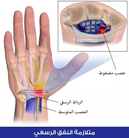 تُعرف متلازمة النفق الرسغي أيضًا بمتلازمة العصب الأوسط المنضغط أو اعتلال العصب الضاغط، وهي حالة شائعة تسبب ألمًا، وتنميلًا أو وخزًا في اليد والرسغ.
