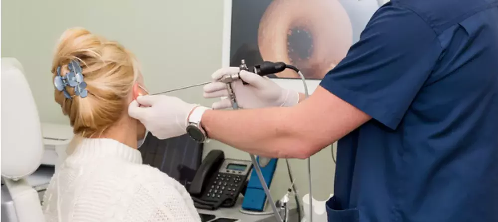 5. يقيس الطبيب رد فعل طبلة الأذن لديك بواسطة المنظار الهوائي.