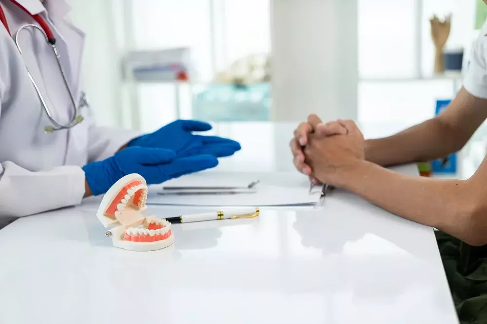 1) سوف يتحدث معك طبيب الأسنان لمعرفة المشكلة التي تعاني منها و يقوم بجمع معلومات عن تاريخك المرضى و العائلي و إذ كنت تعانى من التحسس تجاه أي من المواد المصنعة لأطقم الأسنان.